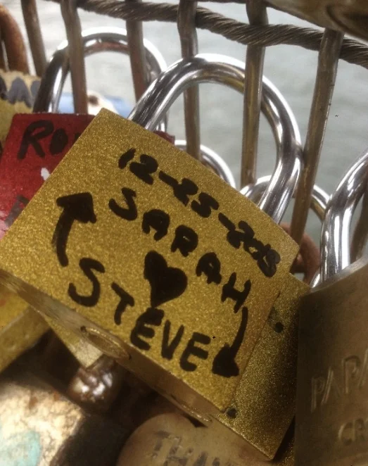 We met in 2012 in NYC, during a business meeting. it is a long story and Sarah version is an official story even though certain details might not be very accurate according to Steve:). We fell in love when our business deal almost broke apart. In January 2013, Sarah made clear to Steve that she was not interested in a serious relationship and Steve said, "Do what you will. In the end, we'll end up together". We were engaged in December 2013 in France, and now we're getting married!