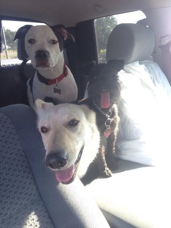 First, the Rest of the family: Malka a tiny black schnauzer, Ziva, a white royal shepherd and Leigha, a lovely but stubborn pitbull. Our Motley crew is also eager to jump in our truck and get ready for a new adventure as long as it involves .. being together - just like us!
